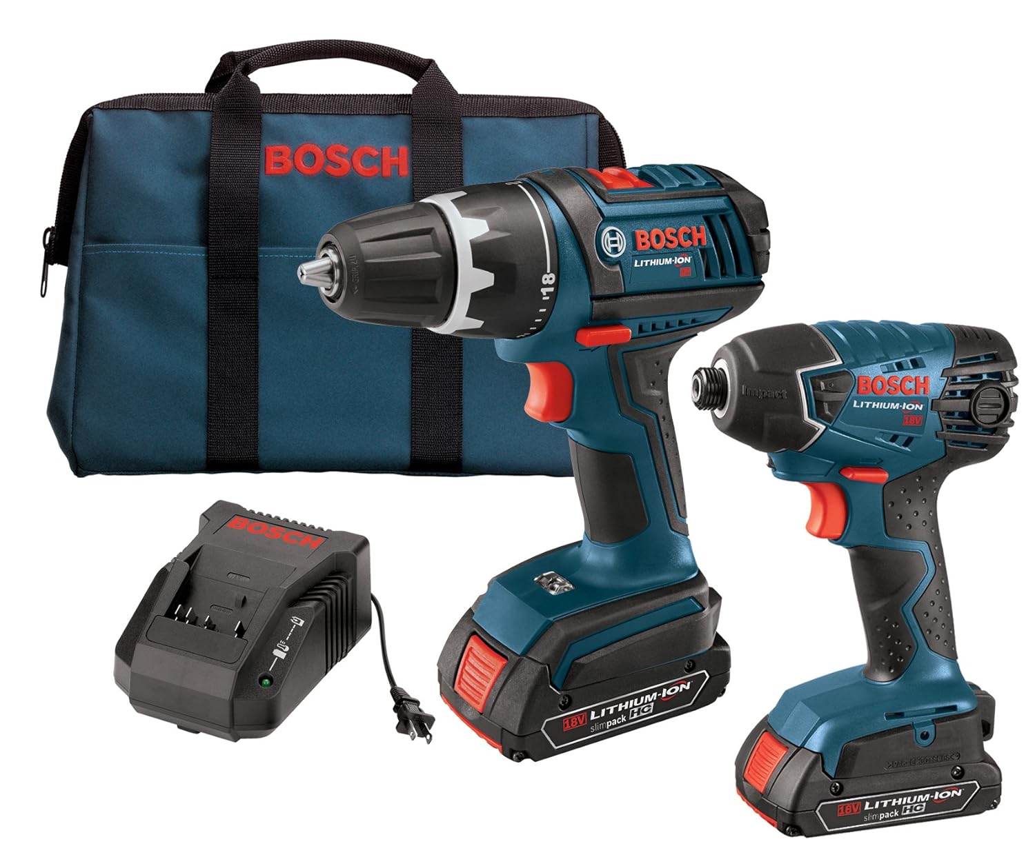 Bosch CLPK232-181 18-Volt Lithium-Ion 2-Tool Combo Kit with 1/2-Inch Compact Tough Drill/Driver, Impact Driver, 2 Batteries, Charger and Case