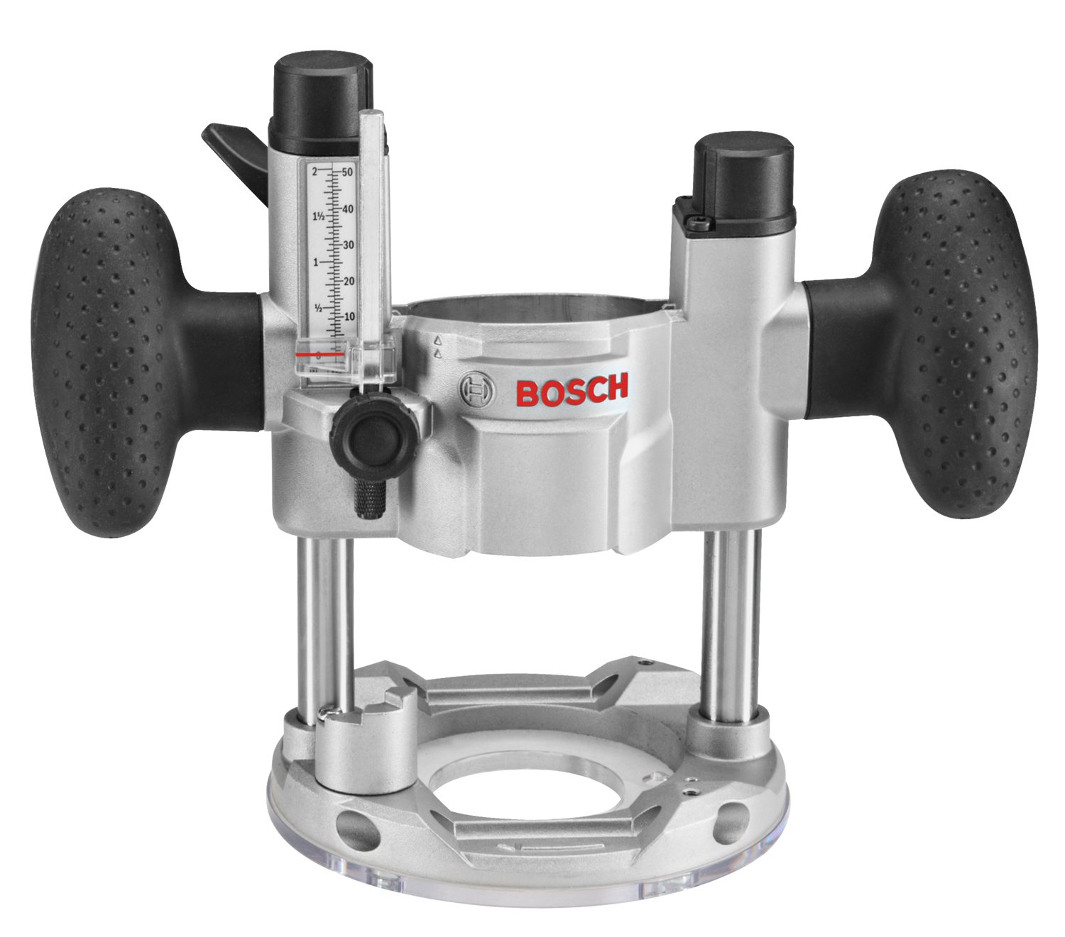 The new Bosch PR011 Plunge Base is designed to expand the versatility of the Bosch palm routers. The PR011 offers exceptionally smooth plunge action and simple micro fine depth adjustments with depth scales printed on the tool in both-Inch and metric measurements. The plunge base offers fast and accurate depth setting with a 7-step depth stop, two of which are adjustable. The PR011s plunge lock lever is conveniently located near the left handle and springs to the locked position when released, as most users prefer. A clear sub-base allows woodworkers to see their work piece at all times, and the units precision centering design makes it easy to adjust the sub-base to keep a bit on the intended cut line when using jigs, templates, dovetail fixtures and other guidance devices.