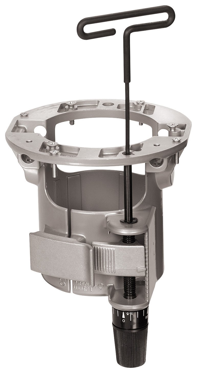 - Allows adjustment of bit height from above the table