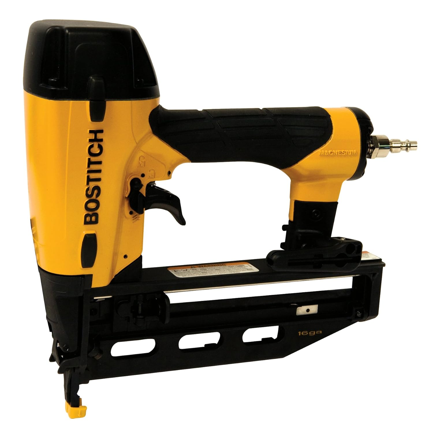 The Bostitch FN1664K 16GA Straight Finish Nailer has a tough new industrial design that shows this tool is built to last. Driving 3/4-Inch to 2-1/2-Inch 16GA fasteners, this tool is great for any finish and trim job. Its oil-free design requires no maintenance and prevents stains on work surfaces, while the swivel air fitting with filtered air inlet increases maneuverability and improves engine durability. The selectable trigger system allows for easy conversion between sequential or contact modes. Additionally, the FN1664K features a dial-a-depth control for quick countersinking adjustments as well as a low fastener lockout that prevents dry fire and alerts the user when it's time to reload. The ultra-quiet rear exhaust directs air away from the user and the reversible belt hook with integrated pencil sharpener allows for ultimate convenience on the job site. This tool is an excellent choice for fastening crown molding, door jams, cabinetry, stair cases and all woodworking applications. Includes 16 Gauge Finish Nailer Kit - FN1664K-R, 1/4-in Swivel Air Fitting, Belt Hook, Carrying case. This is a factory reconditioned tool. Reconditioned generally means that the tool has been returned to the manufacturer, who brings the tool back to like new condition. Some tools may contain cosmetic blemishes.