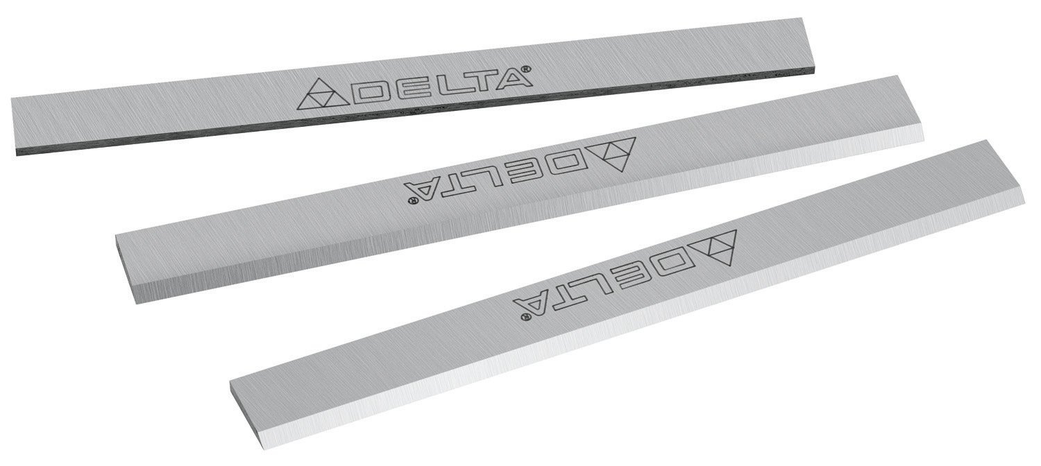 The DELTA 37-658 Set of 3 Knives are the standard replacement knives for the DELTA 37-190 and 37-195 Jointers. They are made of high-speed steel blades for durability and sharpness. The pack includes three knives.