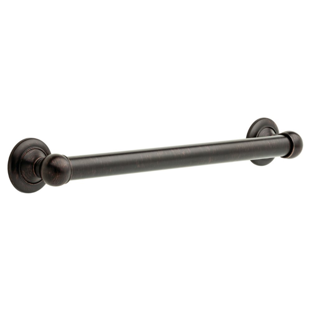 About Delta Faucet Pairing inspirational design with innovations that anticipate people's needs, Delta produces kitchen faucets, bathroom faucets, and shower systems that are as beautiful as they are functional. Delta puts all of their products through a strict regimen of durability testing. Delta Faucet is committed to green manufacturing processes and helping people to be smarter and more environmentally responsible in how they use water. All of these things add up to show how Delta is more than just a faucet. Traditional style grab bar. Venetian bronze finish. Stainless steel construction. Provides support up to 500 lbs.. Dimensions: 21.1W x 2.8D x 3.1H in.. Mounting hardware included. Manufacturer provides limited lifetime warranty.