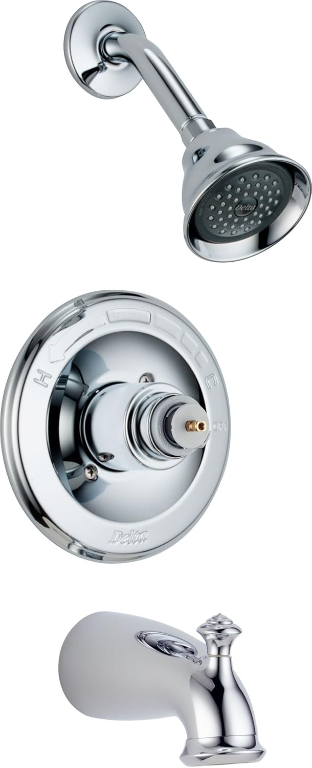 Finish:Chrome A charming teapot-inspired series of faucets for the entire home. Timeless design is a perfect marriage of both form and function. Trim only Handle not included Single function operation - Single lever handle for ease of temperature control. Monitor Scald-Guard valve keeps water temperature within +/-3F. For use with MultiChoice Universal rough valve body (R10000 Series). Solid brass construction ensures quality and reliability. Easy to clean, Touch-Clean showerhead with full spray function. 5-1/2' long pull-up diverter tub spout for added shower convenience. Lifetime Faucet and Finish Warranty WaterSense Compliant Water-Efficient