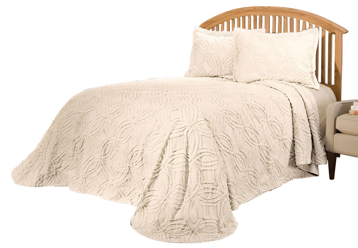 The Eliza Chenille Bedding Sets, a great value! Beautiful and luxurious, this 100% cotton-ribbed chenille bedding is comfortable and cozy for a restful night's sleep, yet looks great in any bedroom. Bedding sets in Twin 80" x 110", Full 96" x 110", Queen 102" x 118", King 118" x 118". Imported. Includes bedspread only. Shams sold seperately.