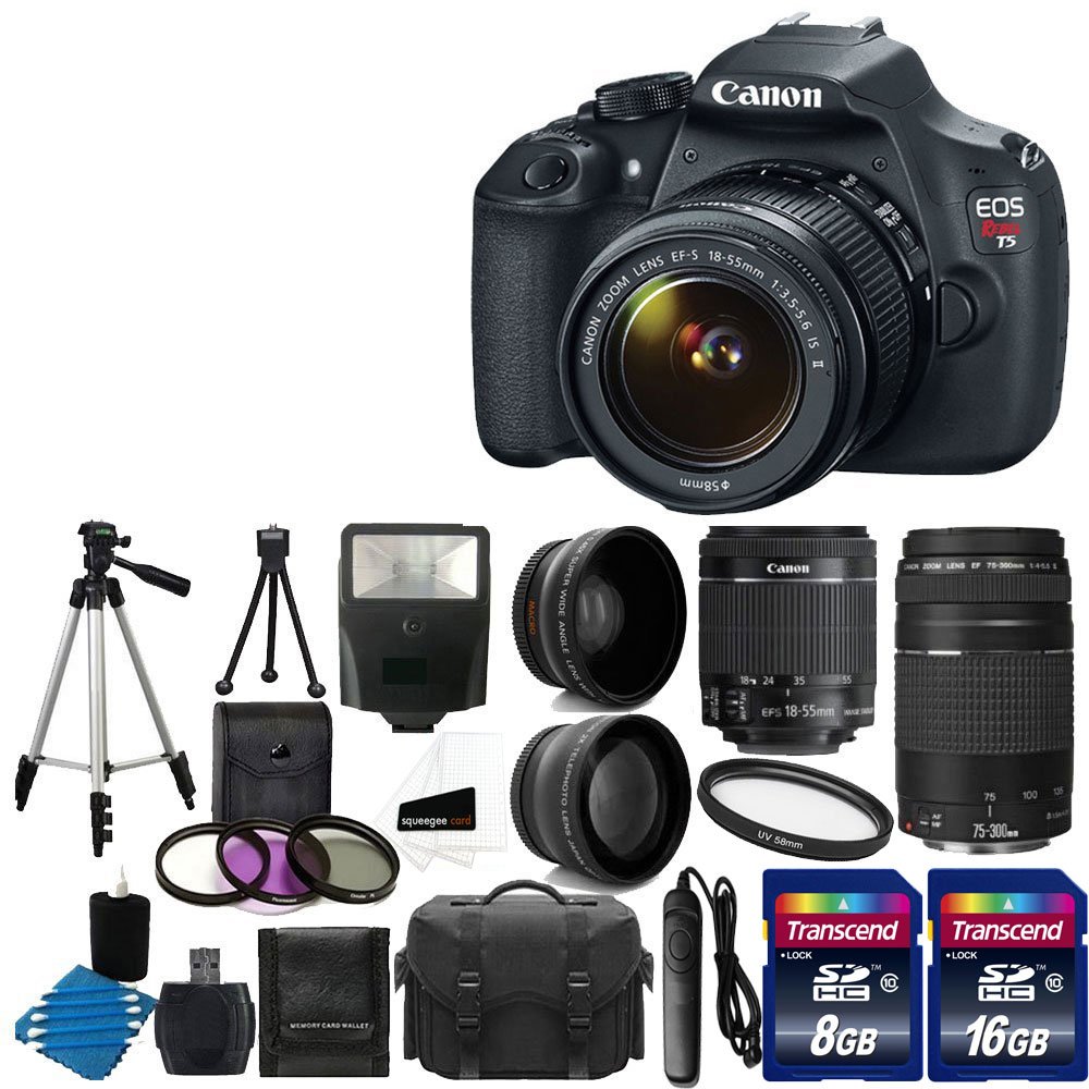 - Canon EOS Rebel T5 EF-S Body - Canon Zoom Wide Angle-Normal EF-S 18-55mm f/3.5-5.6 IS Autofocus Lens - Canon Zoom Telephoto EF 75-300mm f/4.0-5.6 III Autofocus Lens